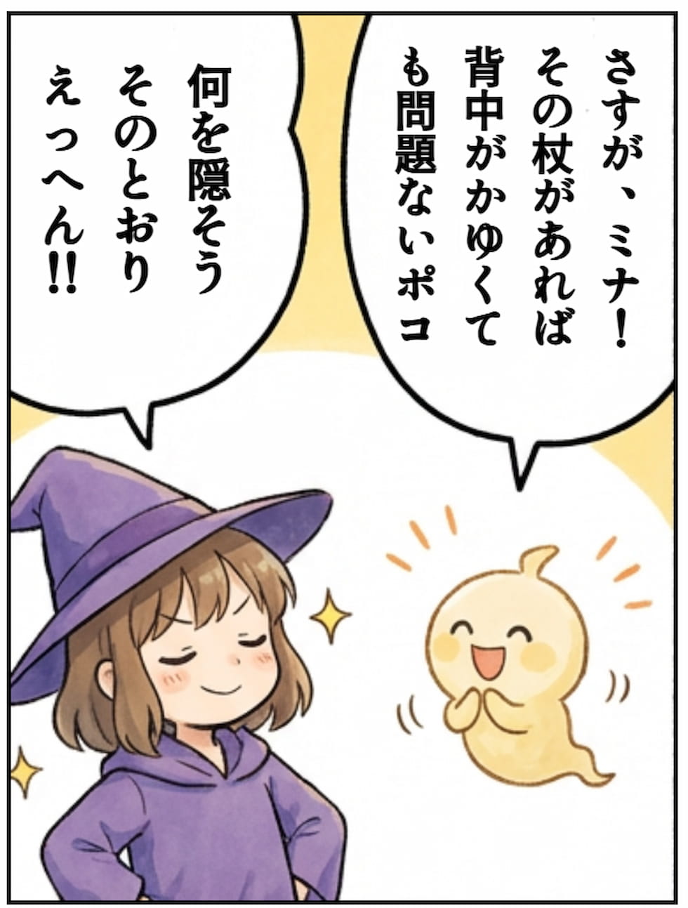 As expected of Mina! With that wand, even if your back is itchy, it's no problem, Poco.